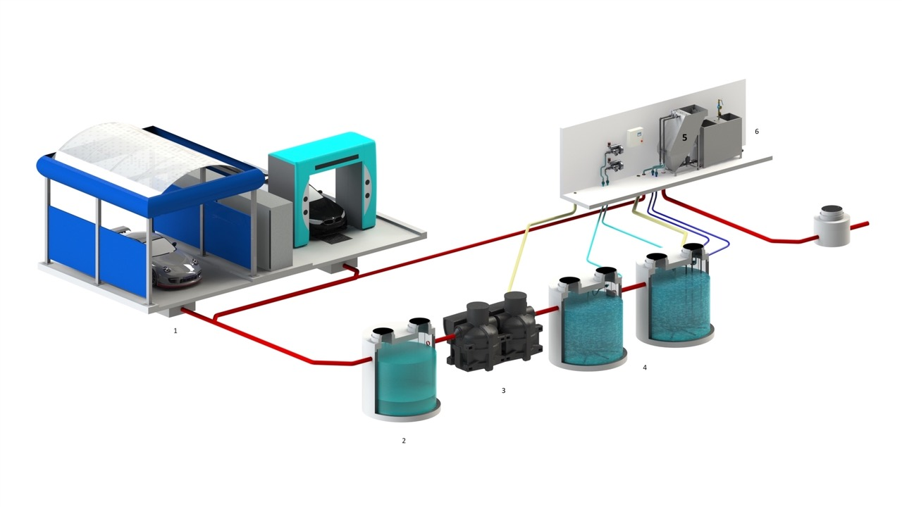Système de recyclage d'eau pour les stations de lavage de véhicules (voitures, camions, bus, trains, avions)